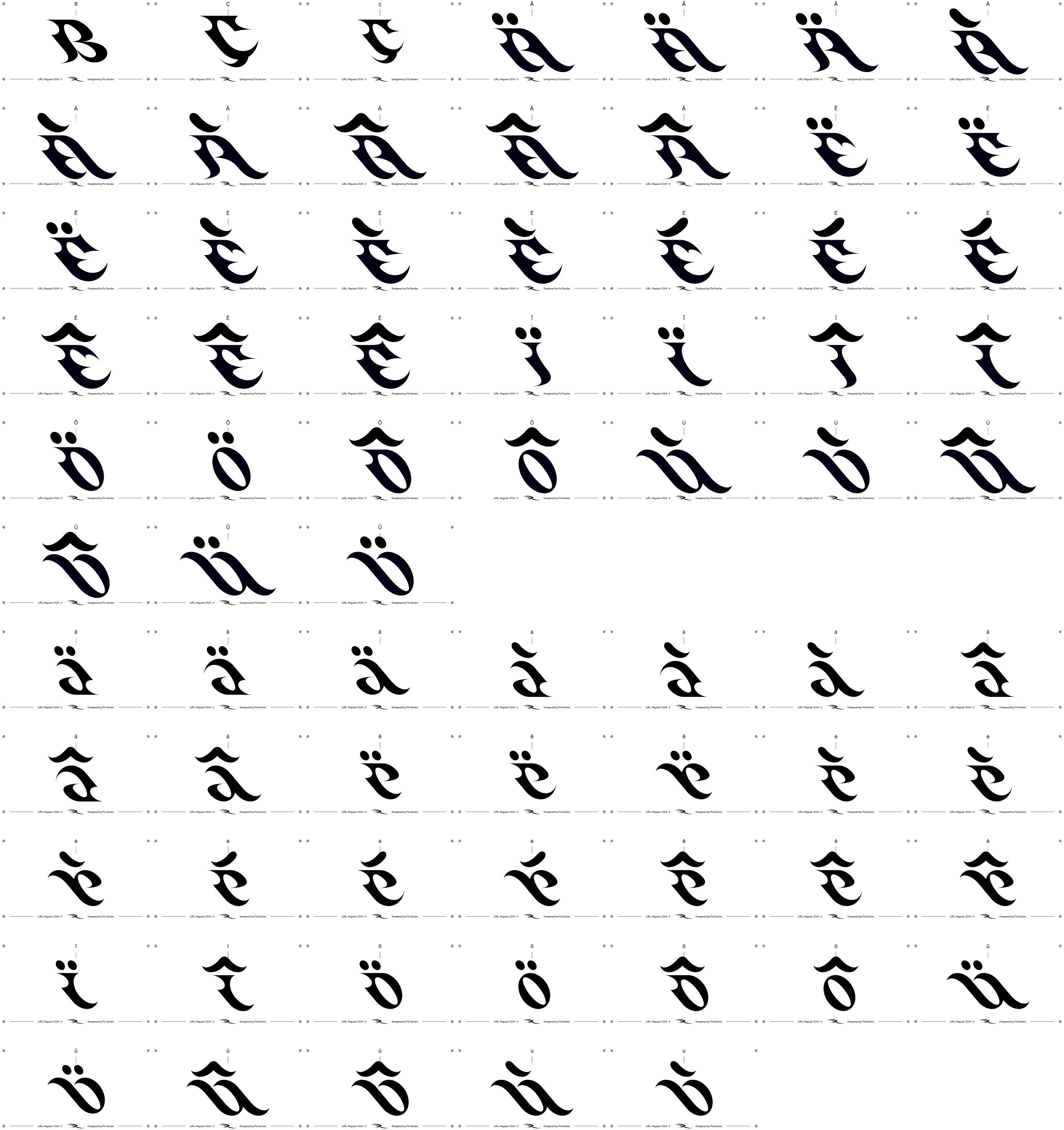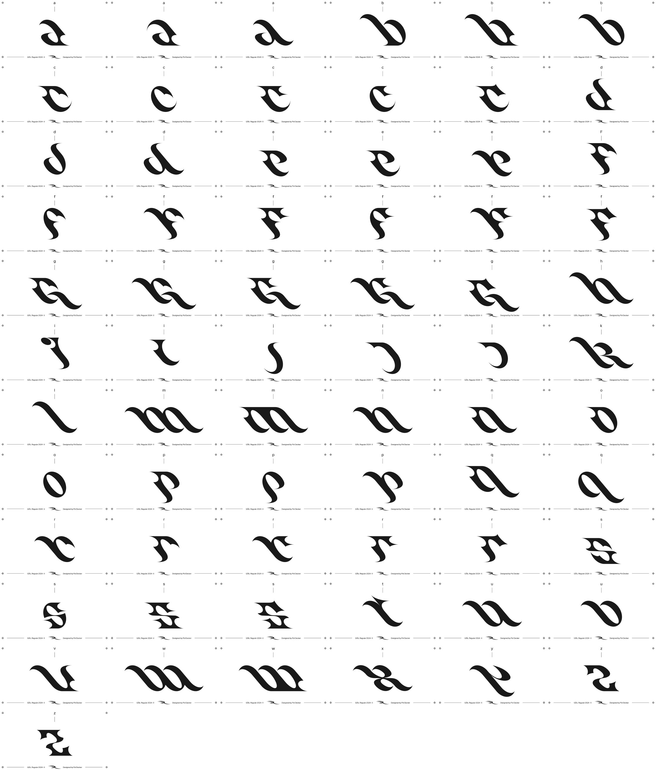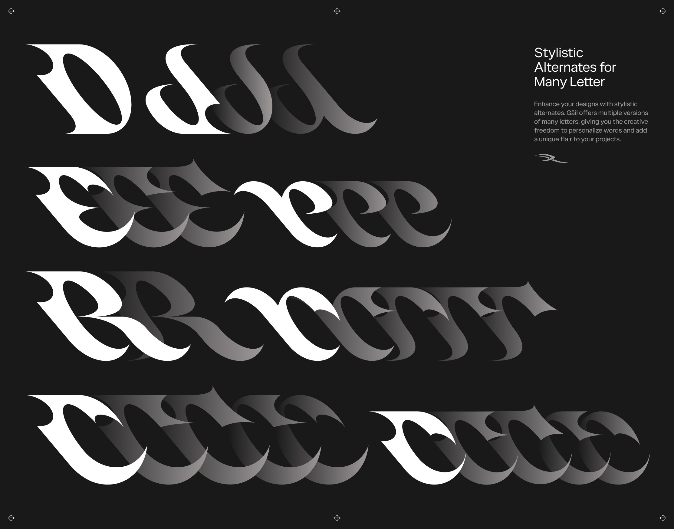 Stylistic alternates for many letters