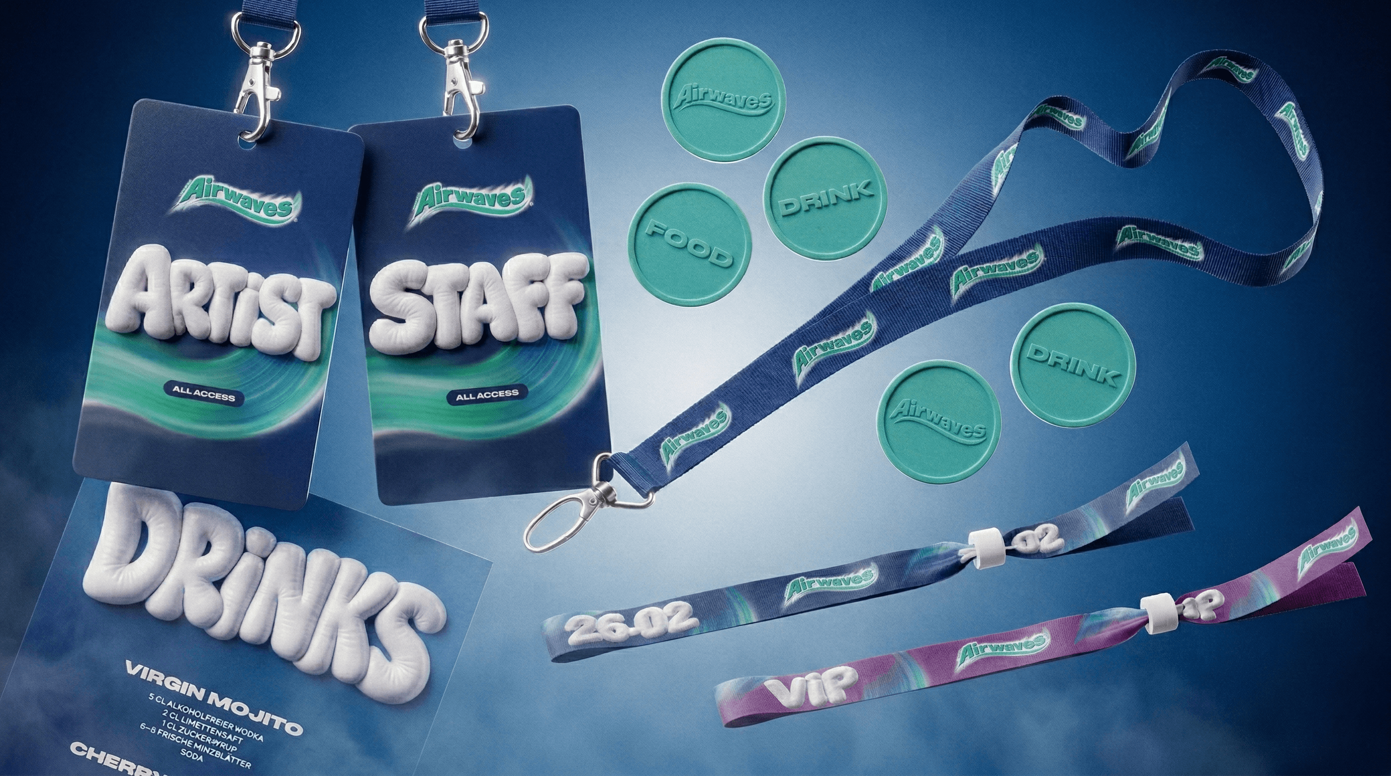 A strong event identity has to work everywhere: from the first teaser to the final on-site moment. For Airwaves, I crafted a flexible identity system and led the creative direction across motion, live visuals, print collateral, merchandise, 3D product renders, and digital interfaces.